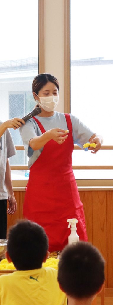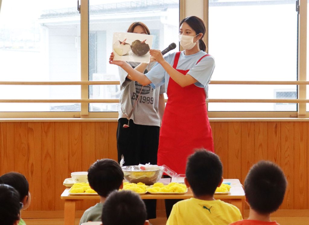 こんにゃくが芋から出来ていることを伝えると、子どもたちは大変驚いた様子でした!