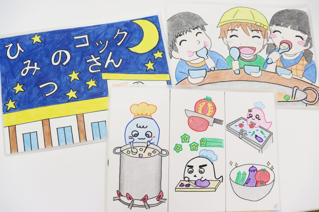 保育園・幼稚園・こども園に勤める当社スタッフたちが協力し合い、「少しでも野菜を食べられるようになってほしい」「紙芝居をきっかけに食の楽しさを知ってほしい」という想いのもと、物語の内容からイラストまで全てオリジナルで約1年かけて作成しました。