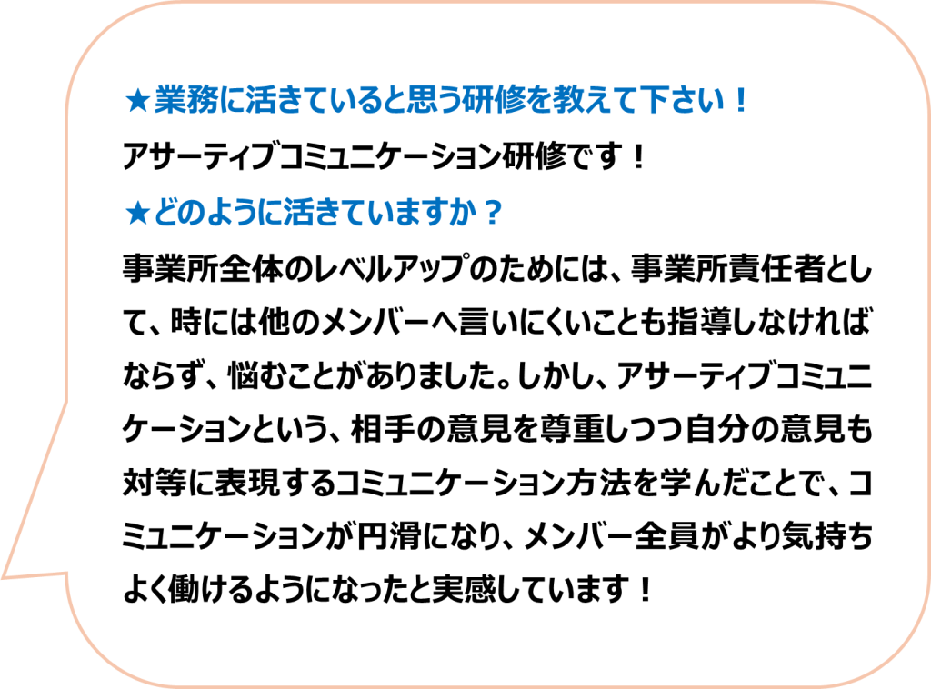 事業所メンバー全員が気持ちよく働けるよう、コミュニケーション方法を学ぶ!