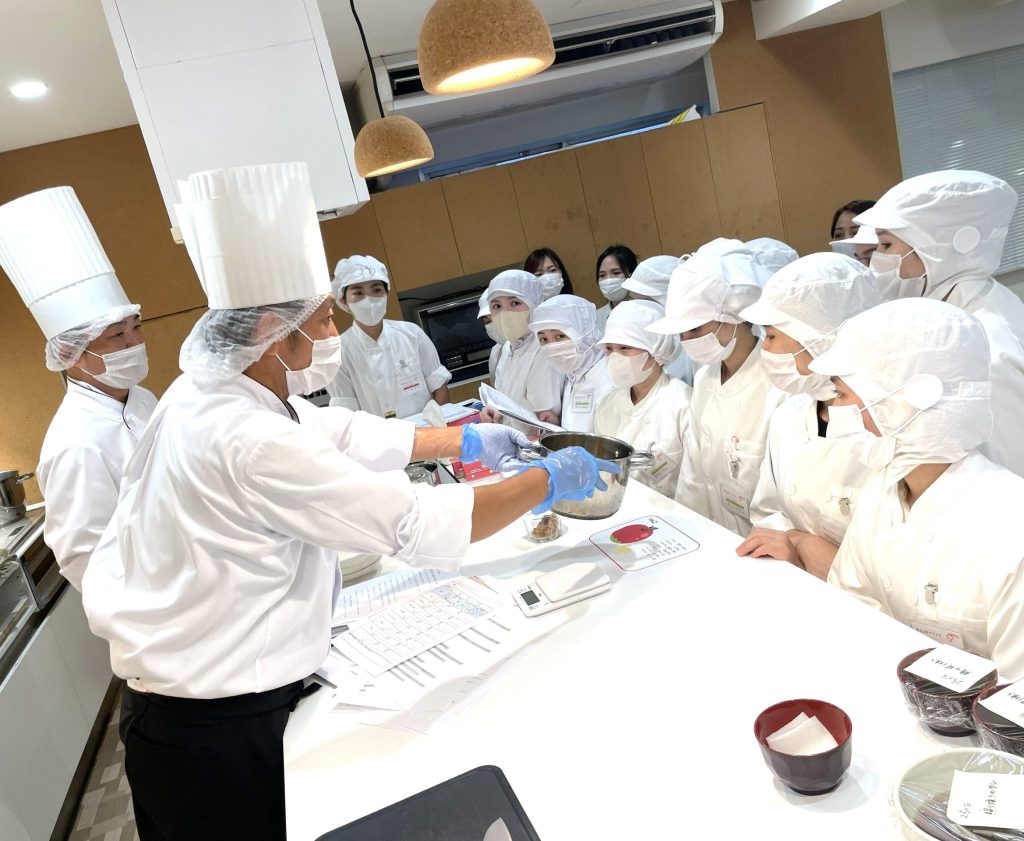 講師は、日頃から事業所で調理指導を行っている経験豊富な当社の調理師が担当。和食ならではの包丁・調理器具の扱い方や、味付けのポイントなど、実践的な指導が行われました。