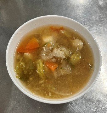 その日の給食では「タラ汁」を提供。解体した寒ダラは、苦みのある内臓や骨を含むため職員用とし、子どもたちには安全に食べてもらえるよう加工されたタラを使用しました。「おいしい!」という声があちこちから聞こえ、笑顔で完食する園児も多くみられました。解体の様子や魚の部位を実際に見たことで、食への関心や感謝の気持ちがより深まり、いつも以上に楽しい食事の時間になったようです。